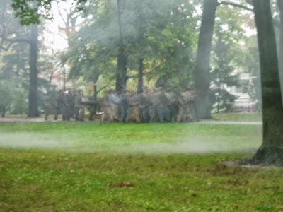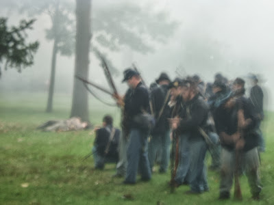 | Some more cannon smoke stuck to the ground, plus confederate reserves moving forward to support. |